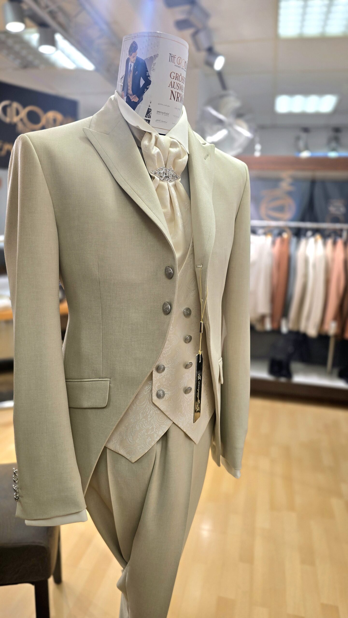 In unserem Store sind ständig über 600 komplette Outfits am Lager. Somit hat jeder Bräutigam eine große Auswahl an Schnitten, Formen, Farben und Größen aus denen er sein perfektes Outfit wählen kann. Sollte nicht das perfekte Outift am Lager sein, so hat man die Möglichkeit sein Traum-Outfit einzeln Anfertigen zu lassen. Vorausgesetzt: Die Hochzeit ist frühestens in 4-6 Monaten!!!