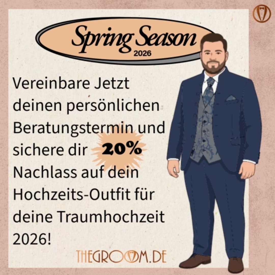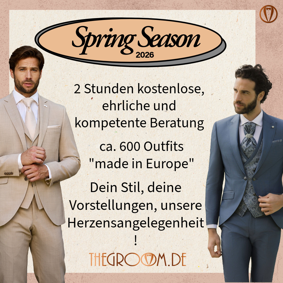 Italienische & internationale Bräutigam-Mode die begeistert. Über 700 Outfits, sofort zum mitnehmen. Schlanke Passformen wie vom Maßschneider, hochwertigste Stoffe und Verarbeitungen und die neusten Designs. Jetzt in Düsseldorf! Vereinbaren Sie Ihren persönlichen Beratungstermin und genießen Sie den italienischen Flair, hier bei uns in Düsseldorf! Egal ob klassisch, royal, Vintage/Boho oder extravagant. Ob zum einmaligen Event oder doch weiter tragbar. Wir machen Ihren Traum vom perfekten Outfit, für Ihre Traumhochzeit 2026 möglich!